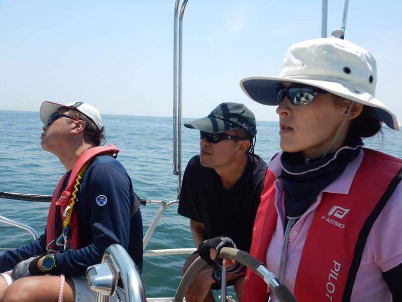 天気は快晴風は弱い。エクシングでは初めてのセーリング