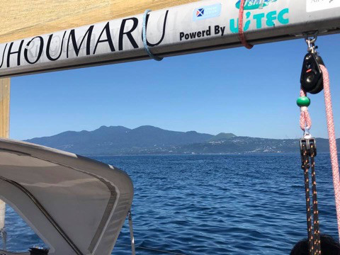 仕事でレースは乗れないが回航参加 京急油壺マリーナも3回目 朝日の出とともに出発 6人 軽い向かい風の中機走で進む